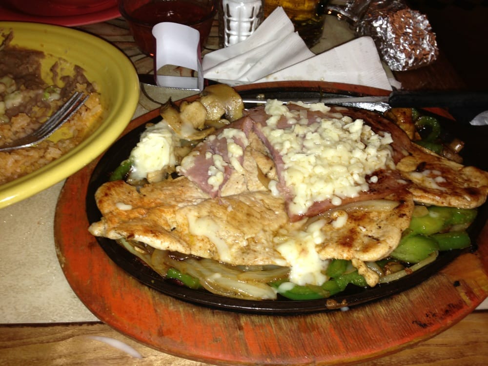 Chicken, Steak, or both grilled with green peppers, onions, and tomatoes. Served with flour or corn tortillas, rice, beans, lettuce, guacamole, sour cream, and pico de gallo